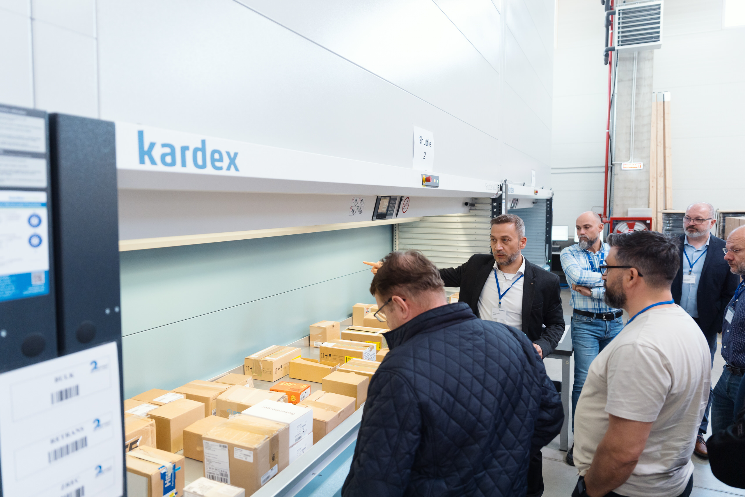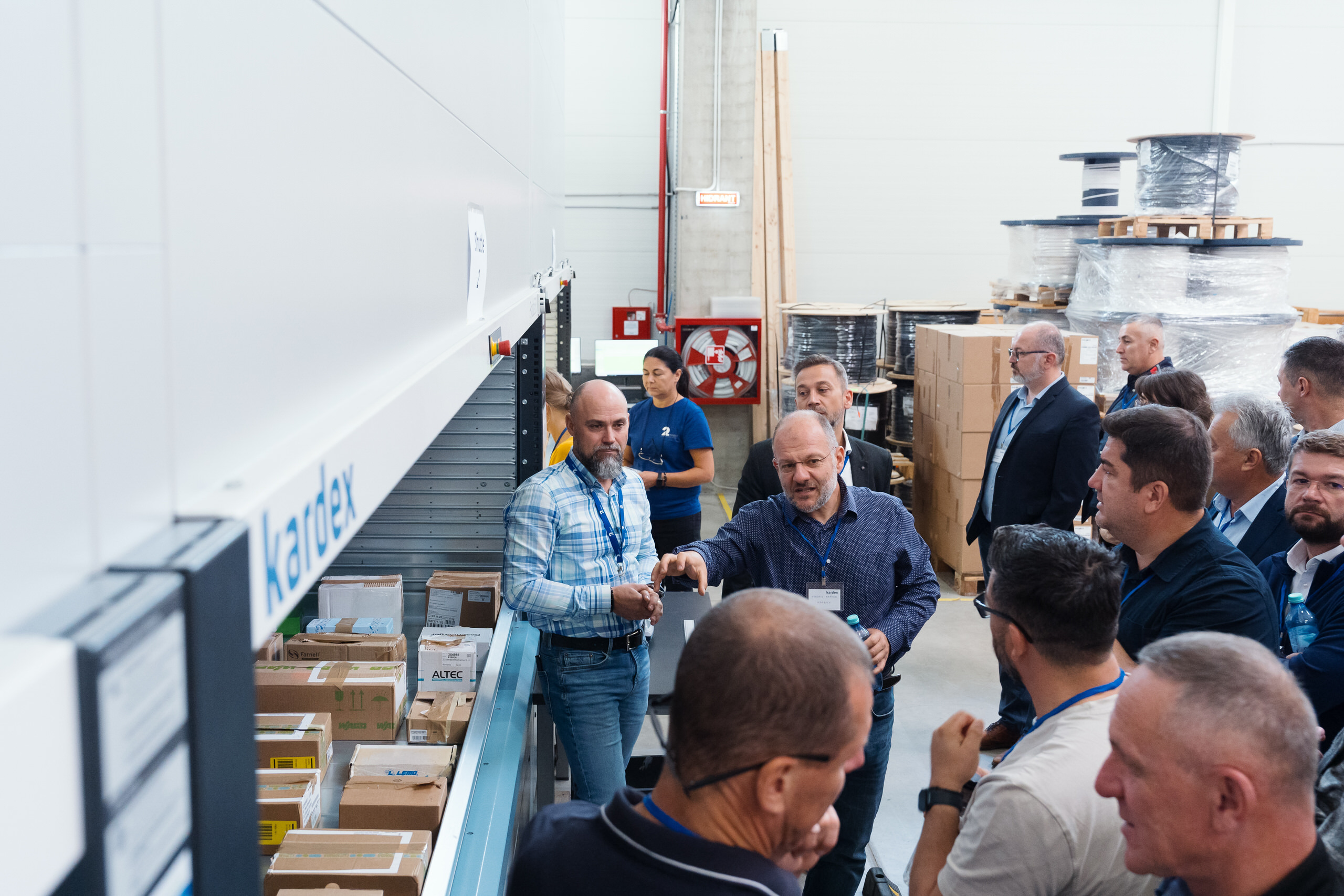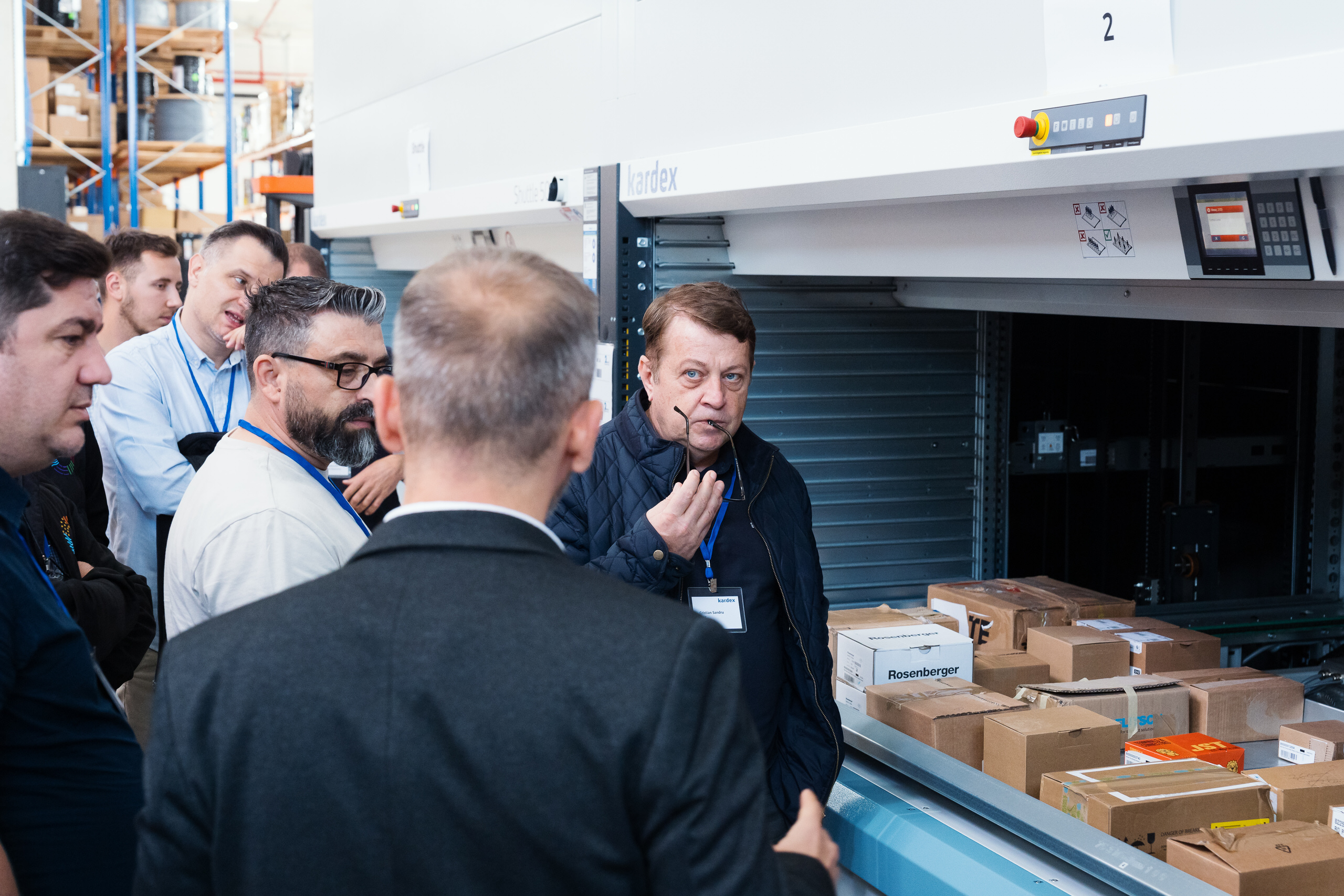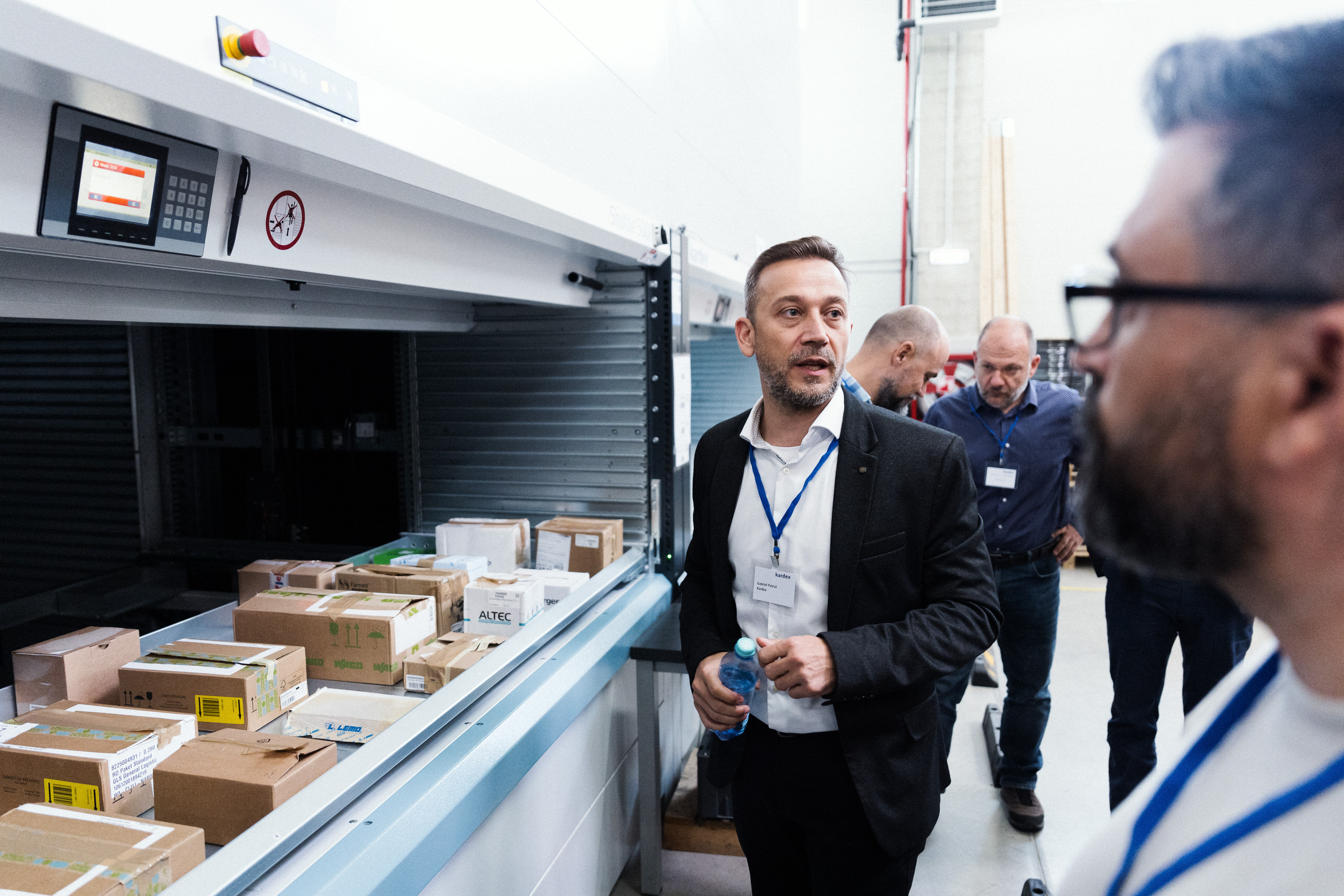 - Demonstrațiile live de echipamente — lifturile verticale Kardex în funcțiune, operatori la lucru, detalii tehnice ale sistemelor