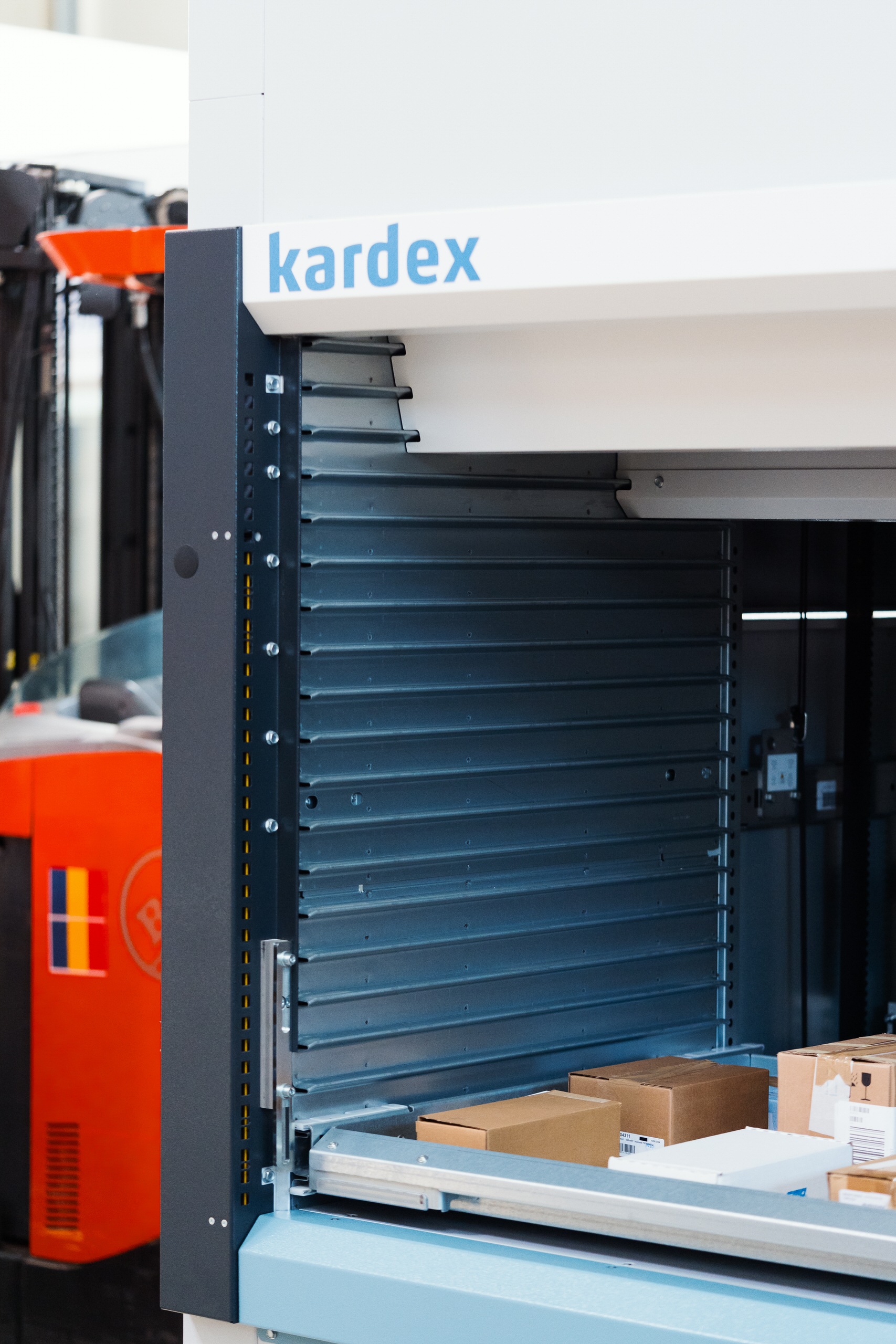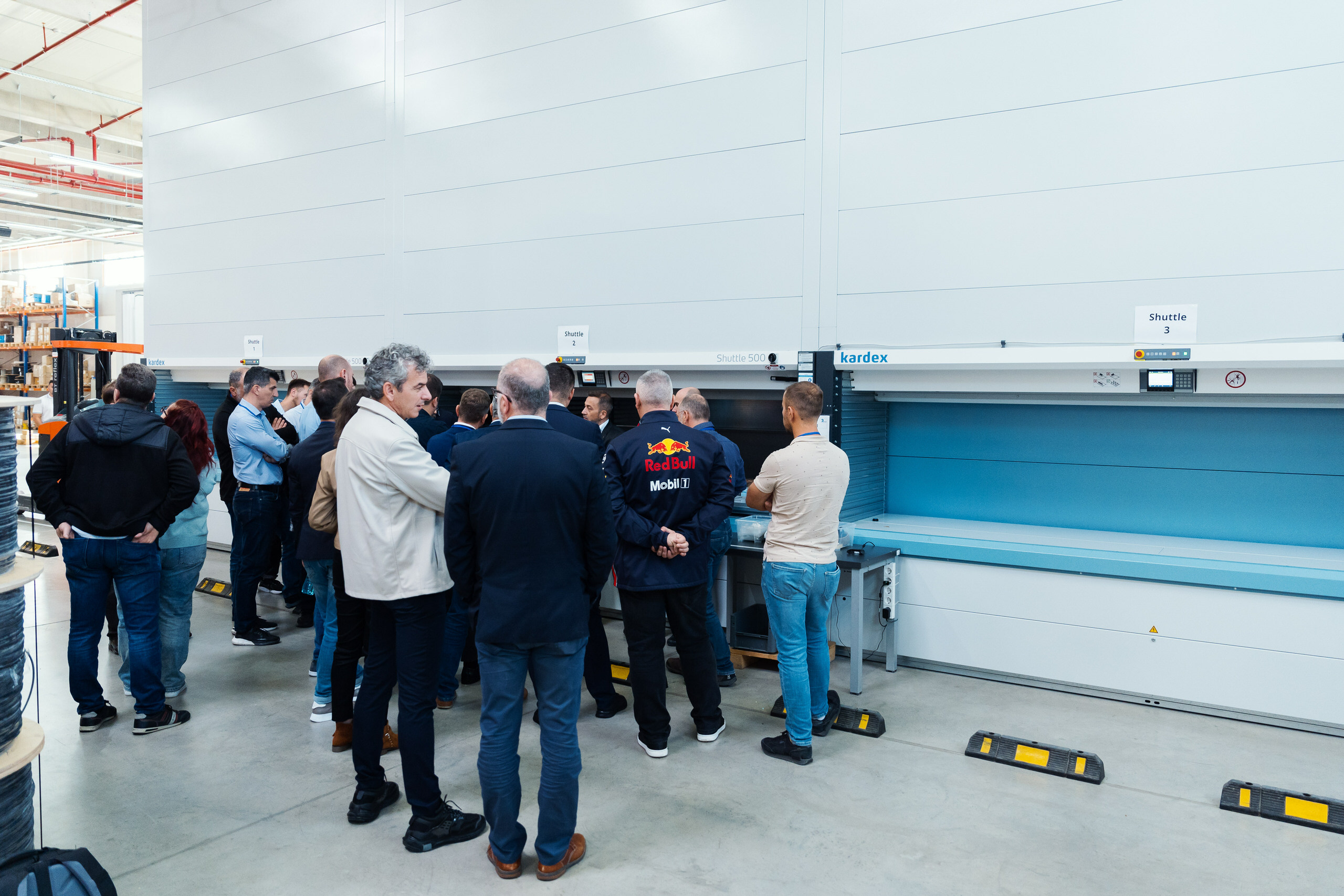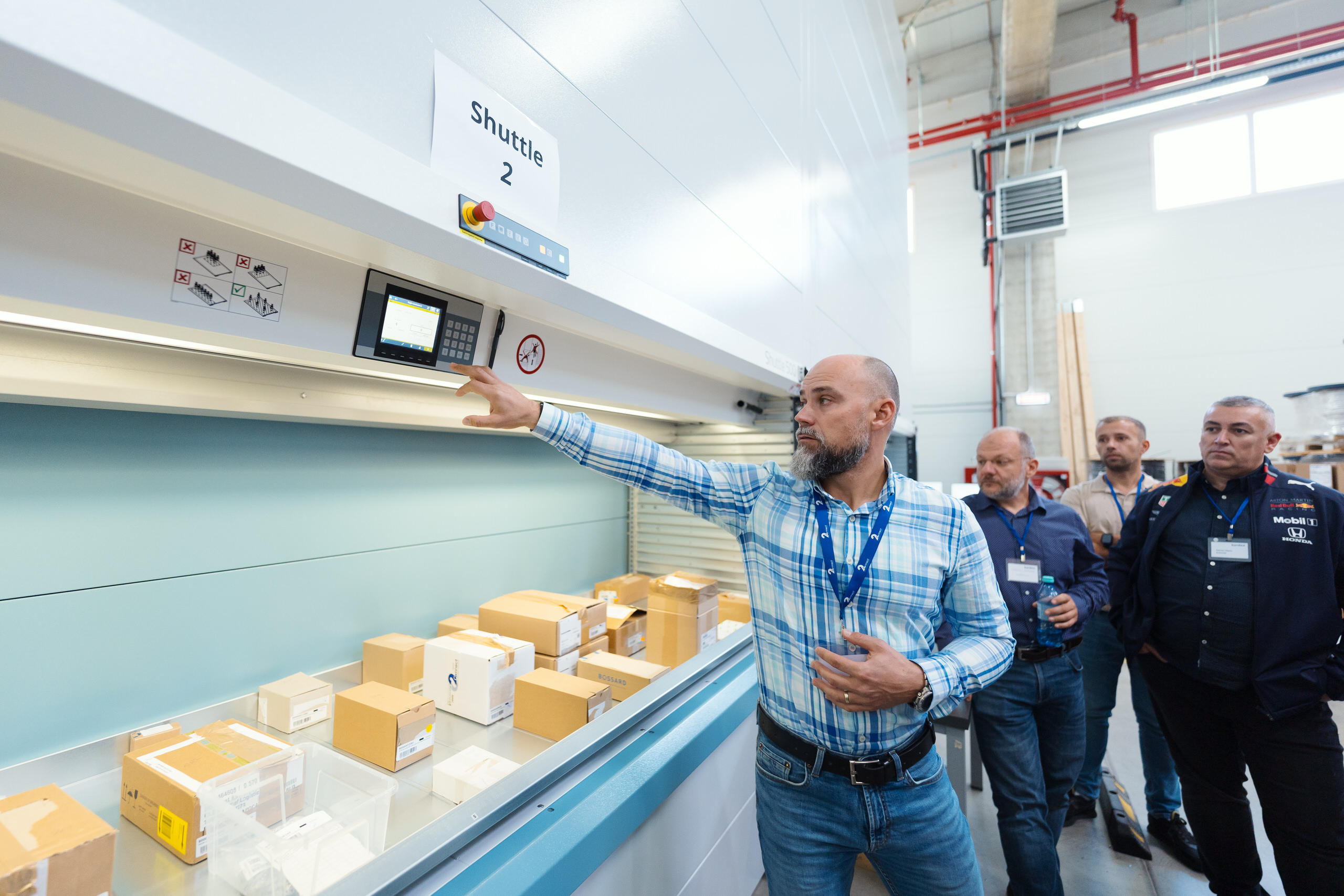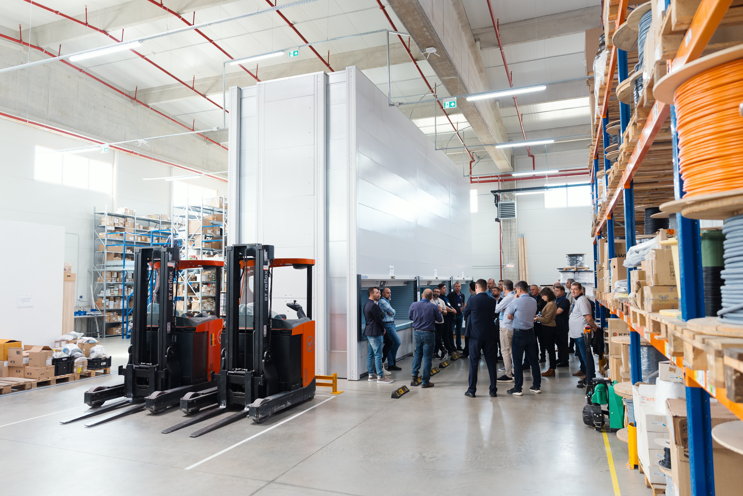 - Demonstrațiile live de echipamente — lifturile verticale Kardex în funcțiune, operatori la lucru, detalii tehnice ale sistemelor